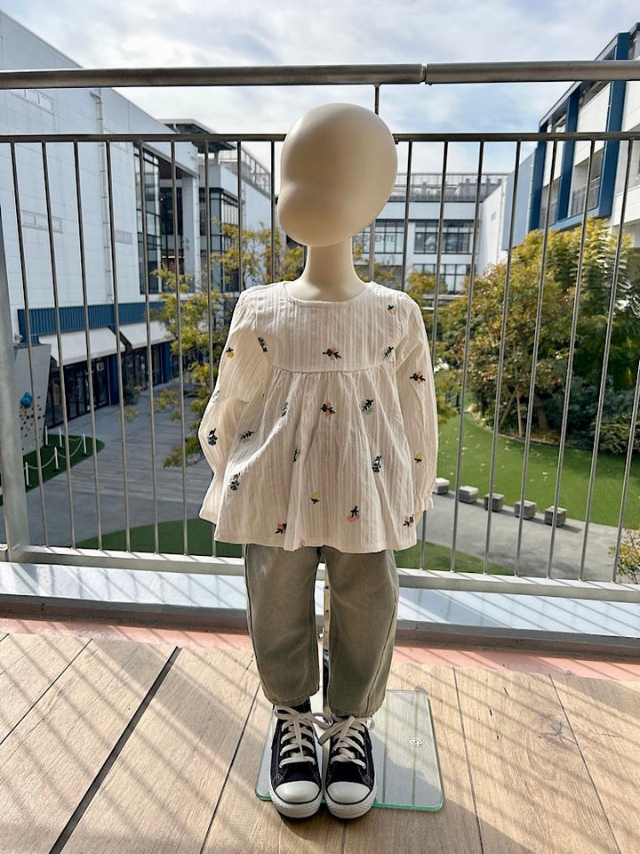 薄い織り柄生地の上からお花の刺繍がかわいいスモックチュニックです