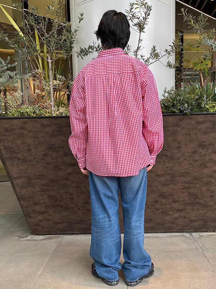 着用アイテム ブロード ストライプ チェック シャツ着用サイズ lサイズ着心地 軽く着心地??