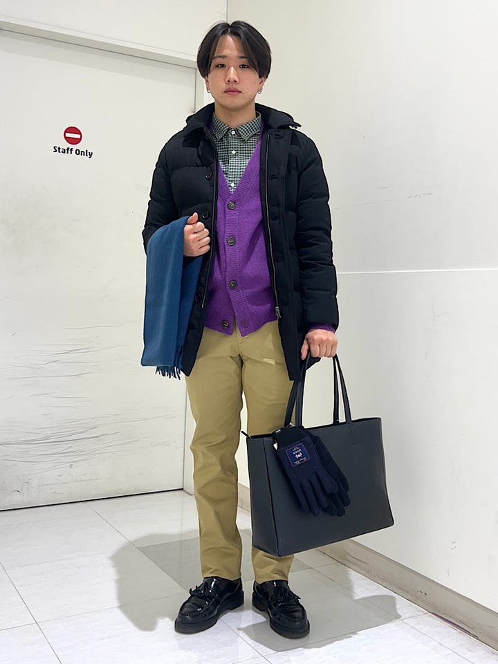 ◆ 着用アイテム:マフラー、カバン、手袋
