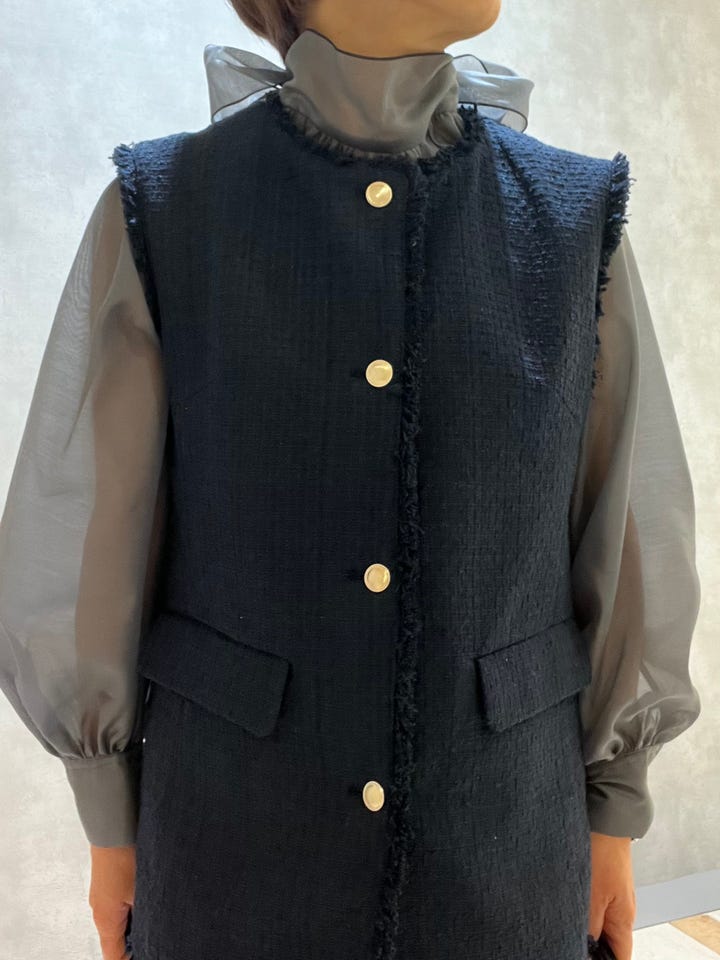 〔ONE SIZE〕ランダム ラメ ノーカラー ボックス ジレ(セレモニー対応可)