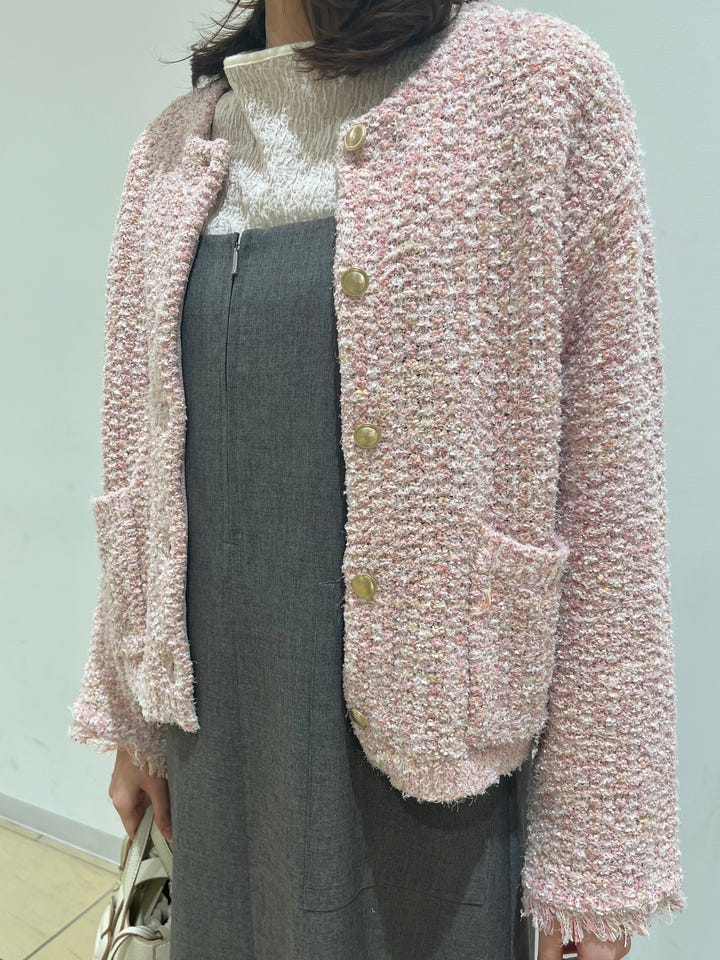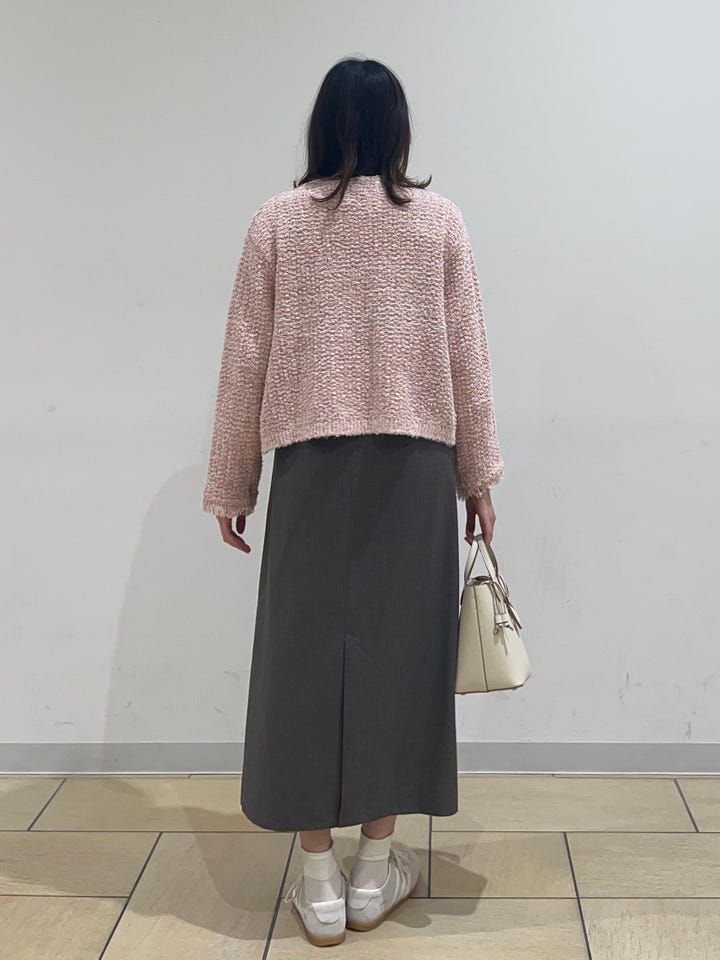 着心地:少し透け感のある素材。シルエットはゆとりがあり、表面の凹凸で一枚でもこなれた印象です。