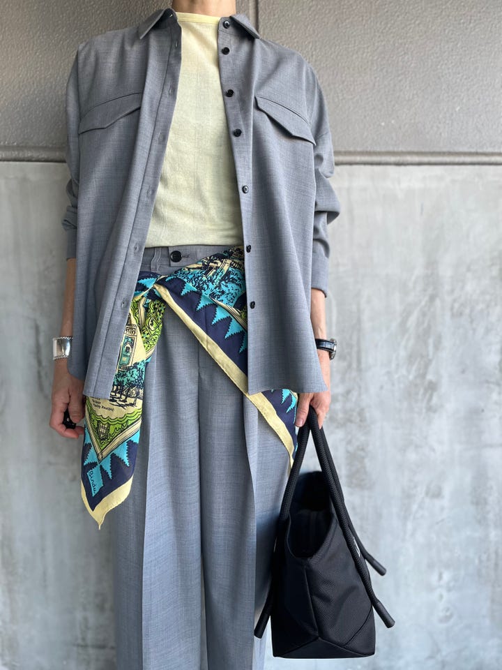 他のカラーとレイヤードして着るスタイリングもおすすめ。