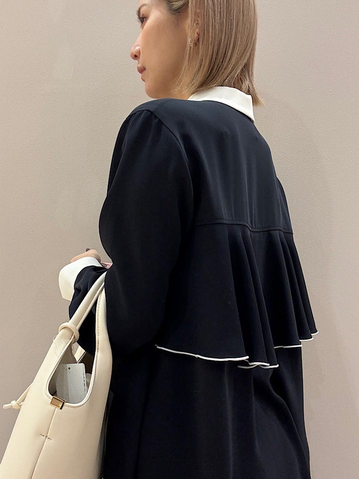 〔ONE SIZE〕〈洗濯機可能〉ライト ダブルクロス バックフリル Aライン ワンピース(セレモニー対応可)