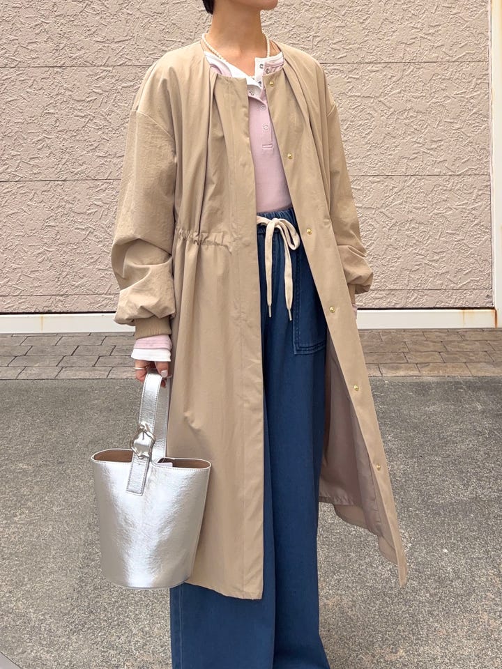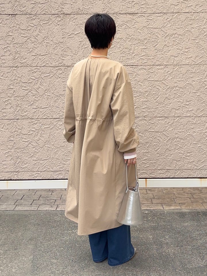 〔ONE SIZE〕SHIPS Colors:〈手洗い可能〉ツイル ノーカラー タック コート◇