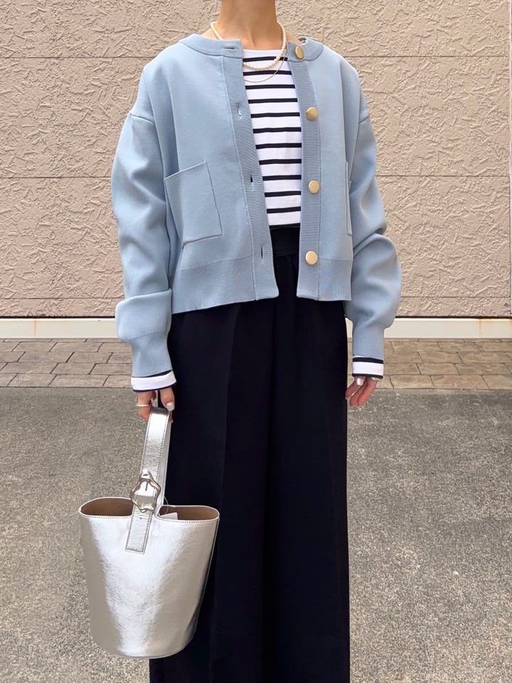 〔ONE SIZE〕SHIPS Colors:〈手洗い可能〉メタルボタン クルーネック カーディガン◇