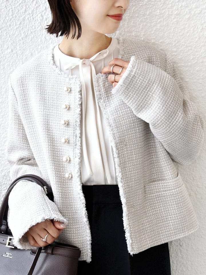 〔36〕《一部追加予約》トライスピン 杢 ツイード パール モチーフ ボタン ジャケット(セレモニー対応可)