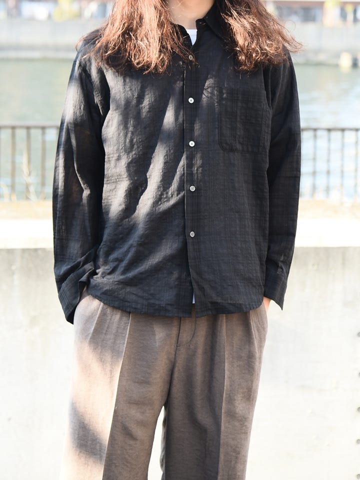 着用アイテム:111-12-2913 City Ambient Products: レギュラー ボイル チェック ロング スリーブ シャツ