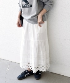 〔ONE SIZE〕SHIPS any:〈洗濯機可能〉キャンブリック レース ギャザー ボリューム スカート
