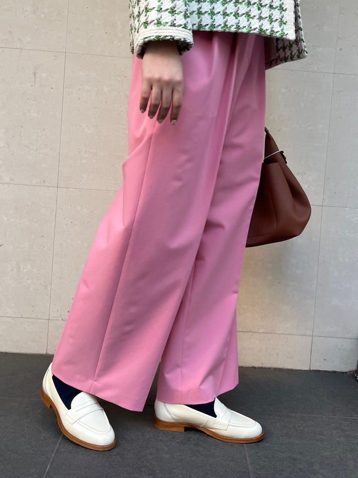 36のサイズを着用していますが丈が長めな印象でした。春らしいカラー展開で一軍パンツになりそうです。