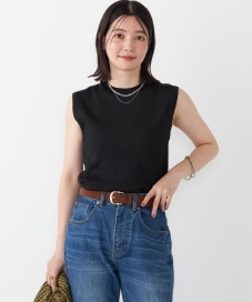 〔ONE SIZE〕SHIPS Colors:〈手洗い可能〉ブライト ワイドリブ ノースリーブ ニット◇