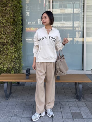 サイズ感・着心地:リアルバイアイテムです。ウエストかなりゆとりあり、ウエストで止まらないので腰で履いています。腰で履いていても足元の綺麗なラインはそのままなので、ルーズに履くのも可愛い!
