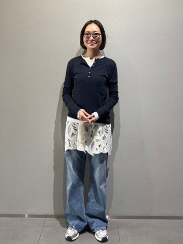 サイズ感・着心地:ゆとりあり。カットソーの下から覗くレースはキャミソールになっています。繊細なレースがとっても上品で可愛い!カットソーの下に重ねても、上に重ねても良しな万能アイテム。