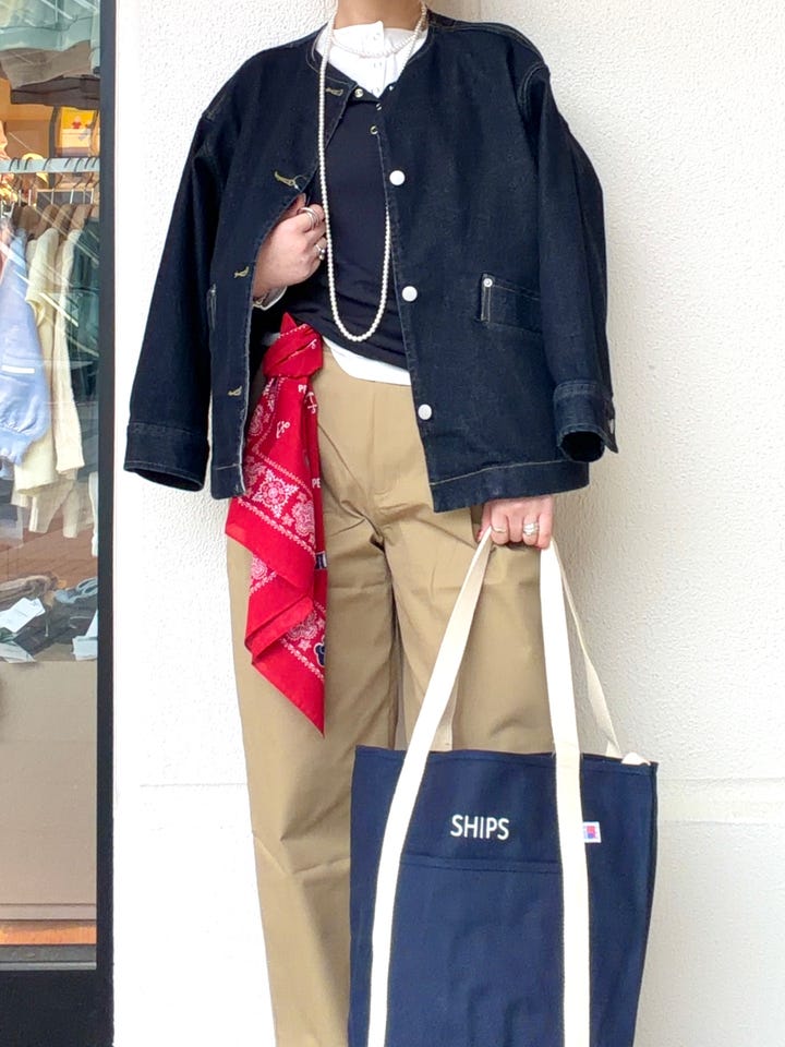 着心地: メンズライクな着こなしが叶うデニムジャケットです!ゆったりしているので、スウェットなどの上からも着用頂けます!