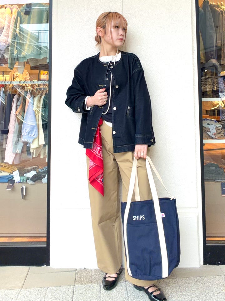 〔ONE SIZE〕SHIPS Colors:〈洗濯機可能〉デニム ノーカラー ジャケット◇