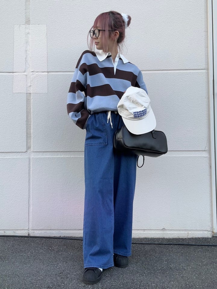 ウエストが全体とゴムで普段のデニムに比べて非常に柔らかい生地感ですので着心地がとてもよいです♪