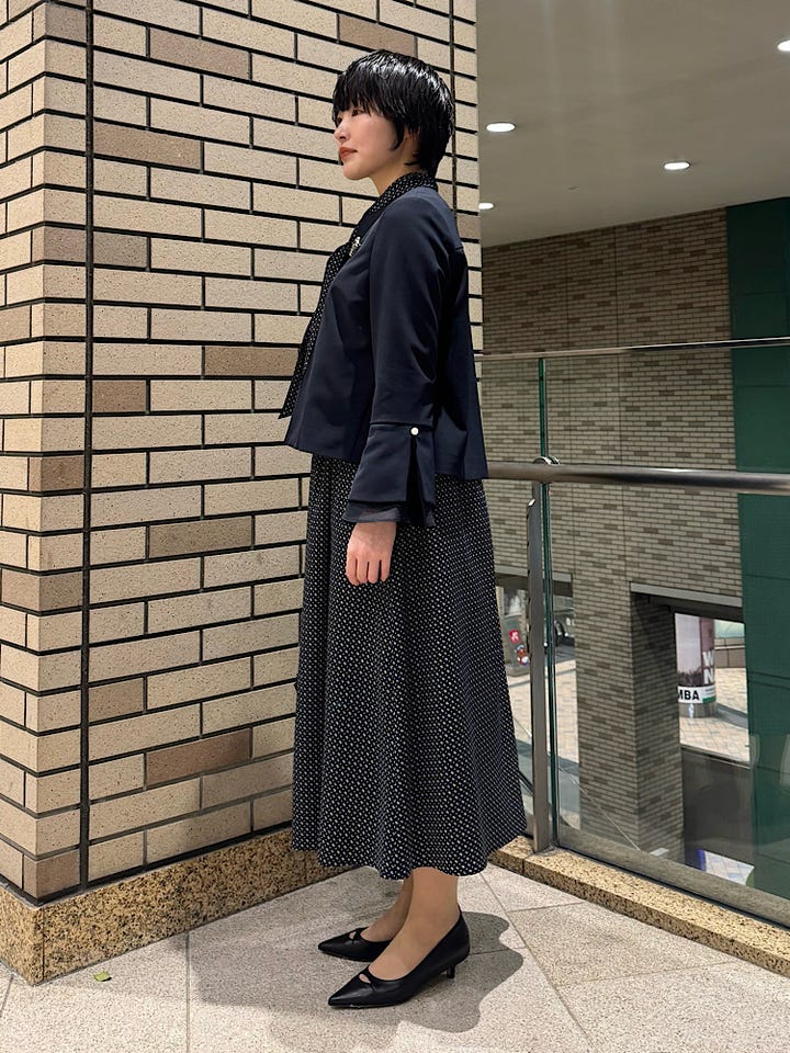 首元のリボンは取り外し可能で、リボン無しでシンプルにも、