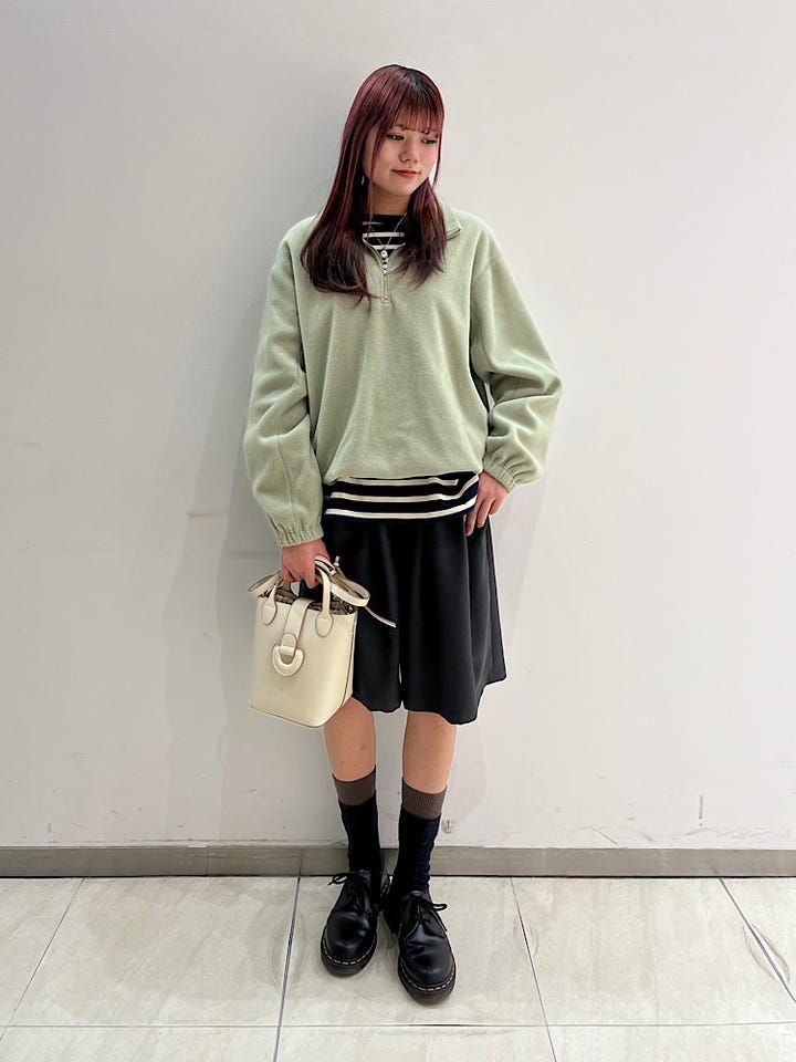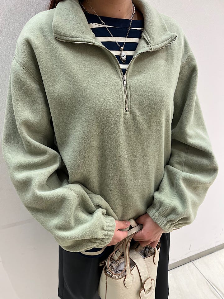 〔ONE SIZE〕〈洗濯機可能〉フリース 裾 ドロスト ハーフ ジップ プルオーバー