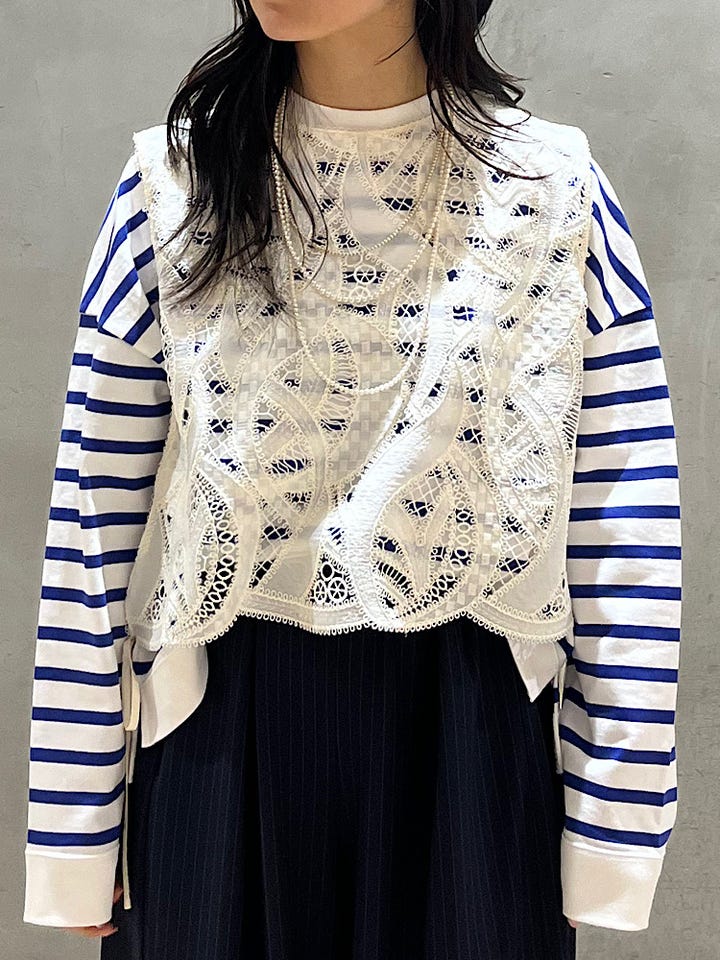 素材感・着心地:大ぶりなデザインが施された肉厚のコットンレース。
