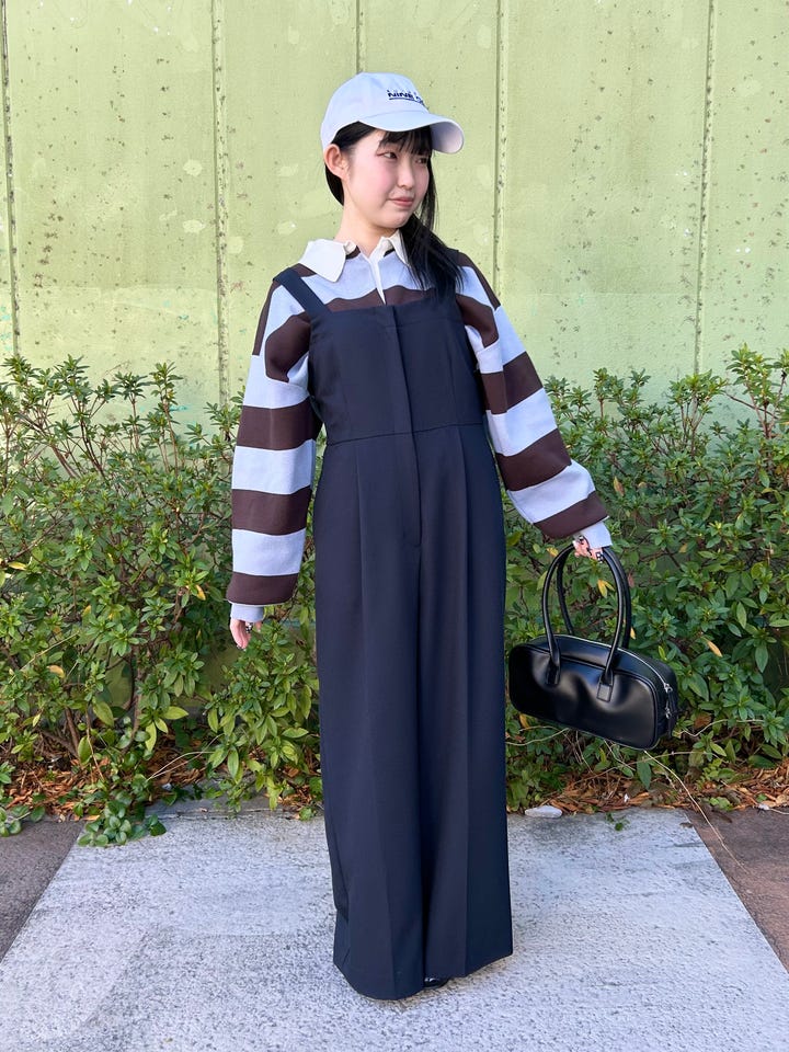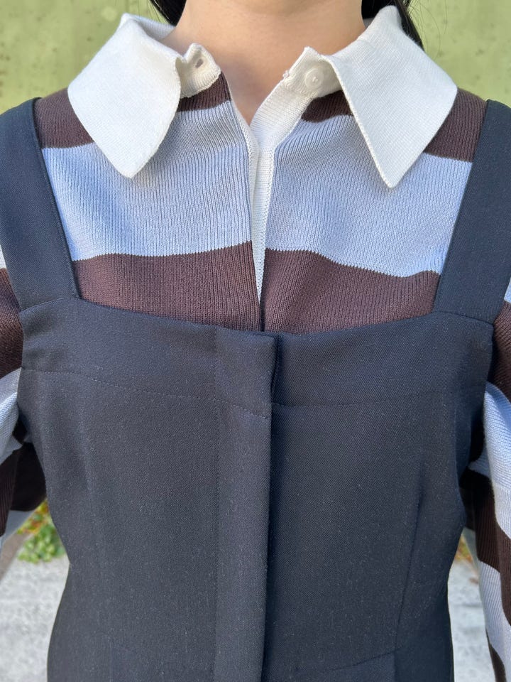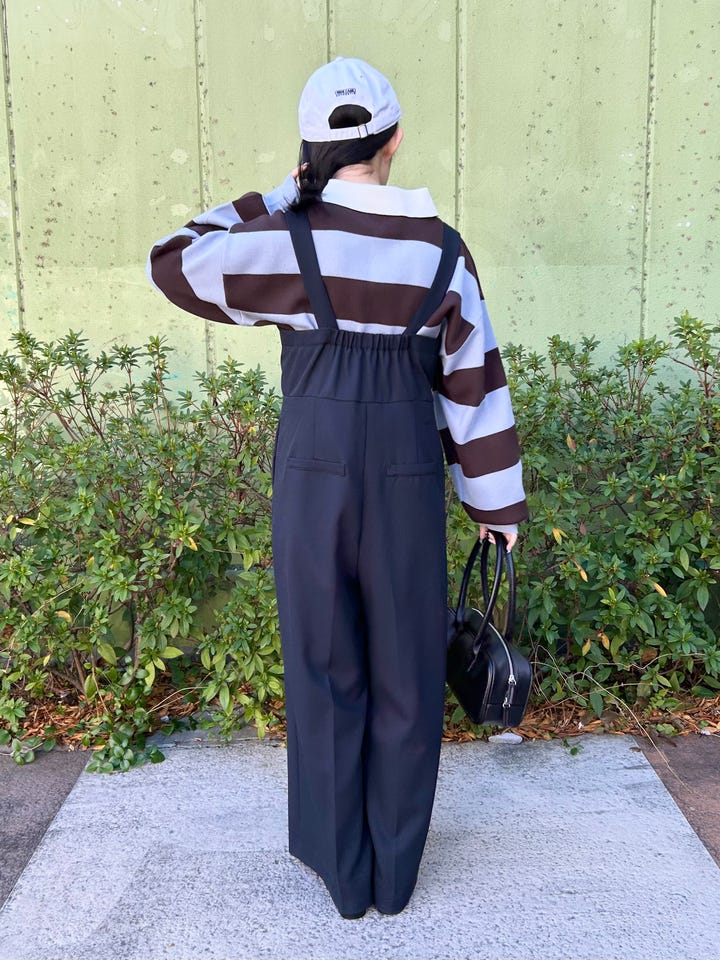 肩紐を後ろで調整できるので好きな長さで着用できます。(2段階です!着画は短い方です。)タックが入っているのでカジュアルになりすぎずに着用できます。