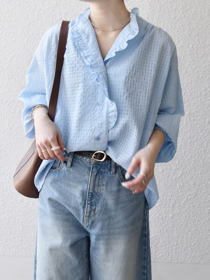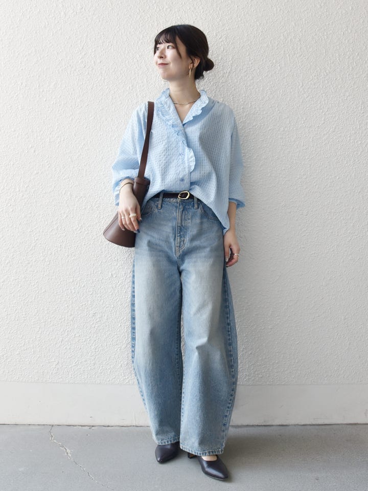 着用アイテム:SHIPS any:〈洗濯機可能〉フリルカラー スタンド & オープン シャツ ブラウス