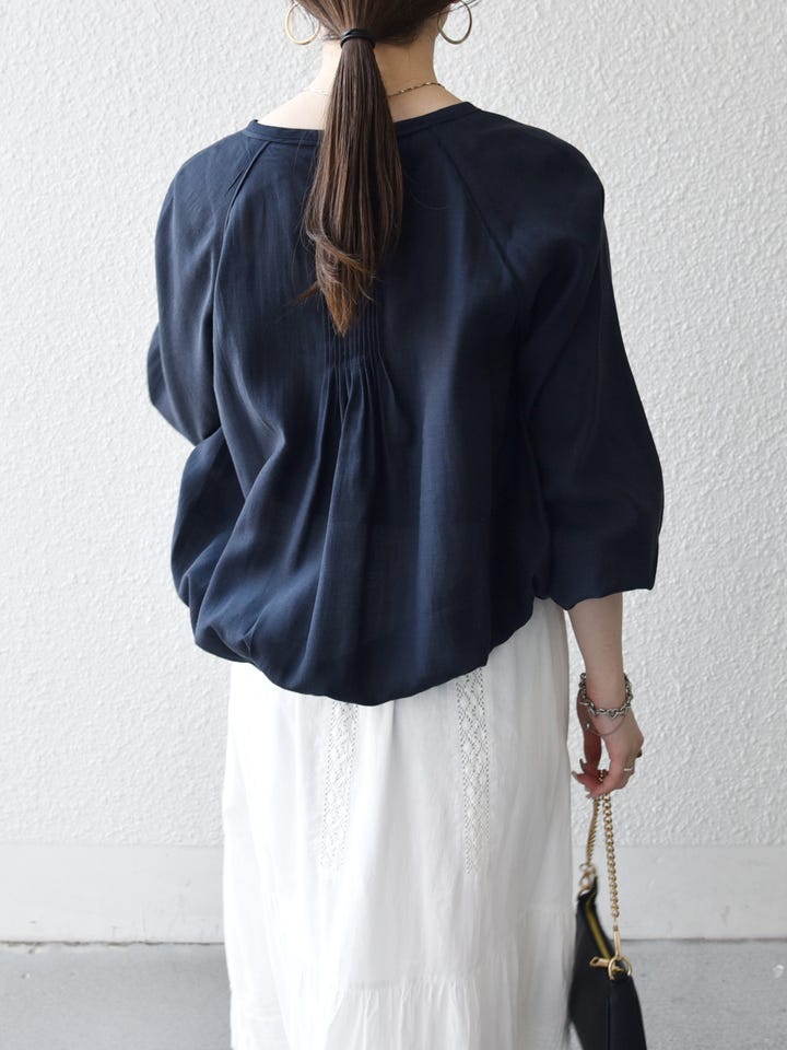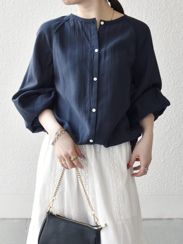 着心地:軽やかでさらっとした着心地。ボリュームスリーブでもシアー素材で見た目も重くならないです。