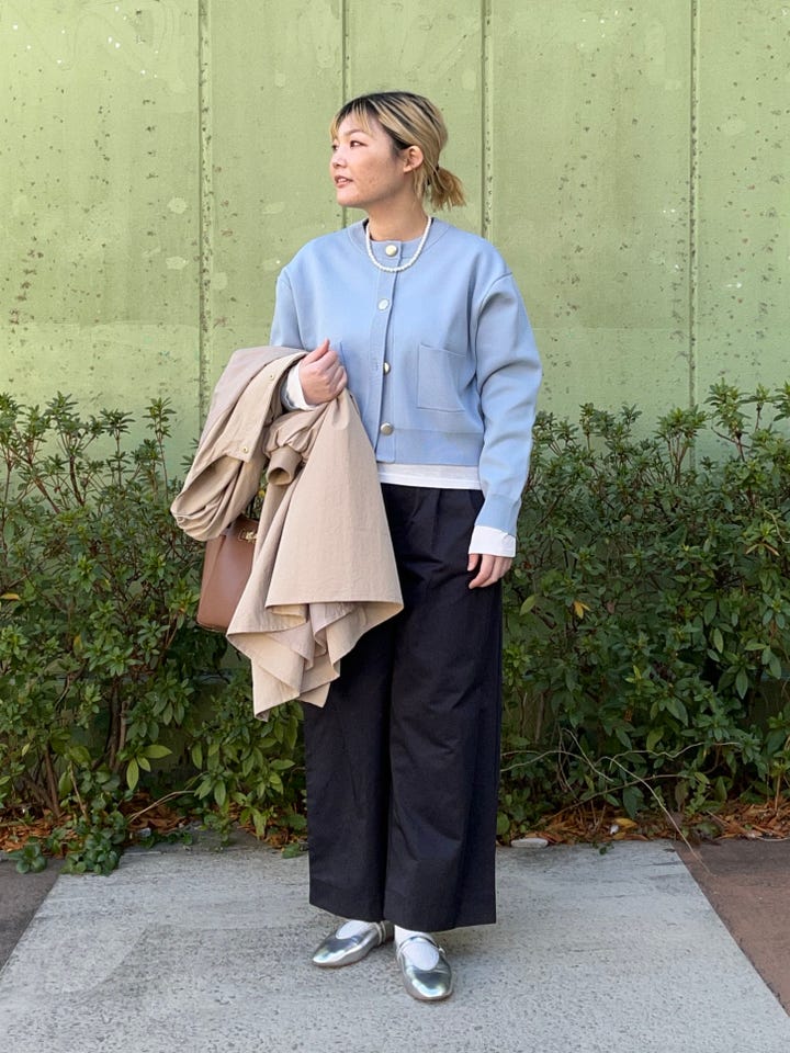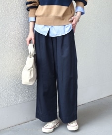 ウエストにドローコードがついていて、ワイドなシルエットのパンツやワンピースにも◎