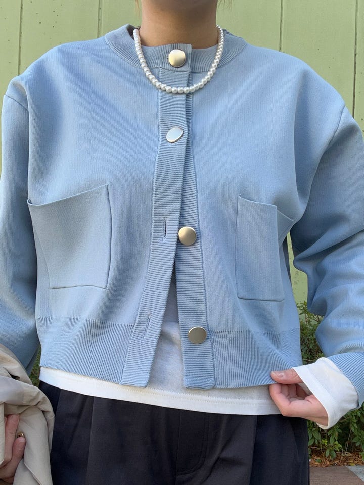 〔ONE SIZE〕SHIPS Colors:〈手洗い可能〉メタルボタン クルーネック カーディガン◇
