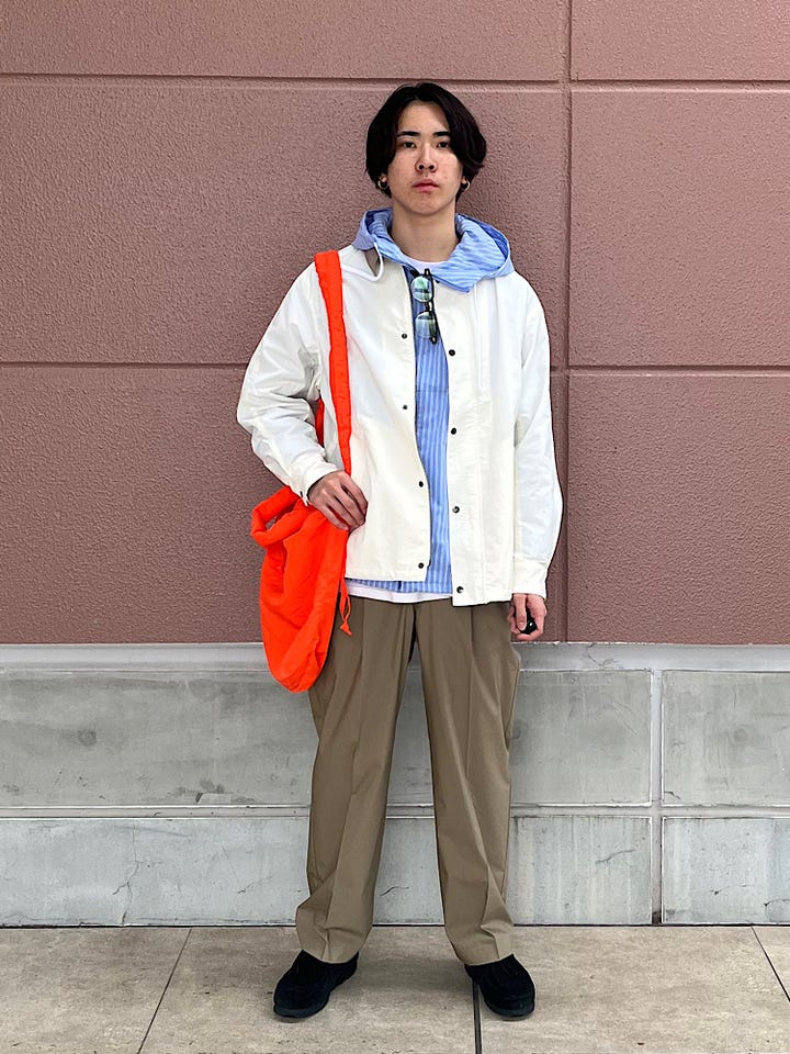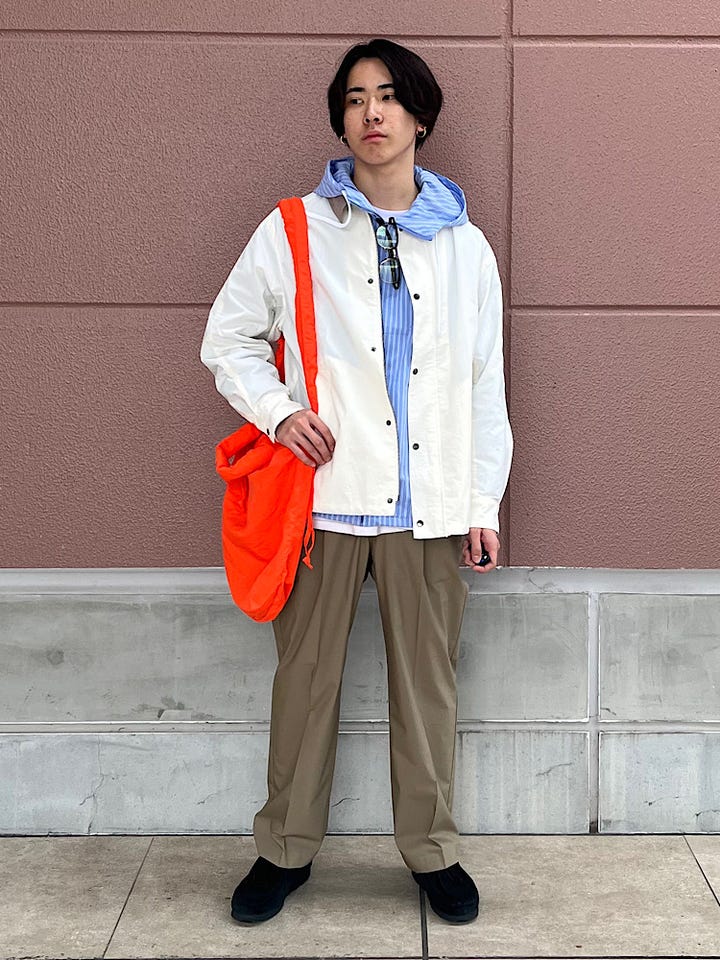 軽やかな着心地で、春から夏にかけてのライトアウターとして快適に着用いただけます。アノラックテイストも取り入れ、ストライプ柄をアクセントにした爽やかなマリンパーカーです。