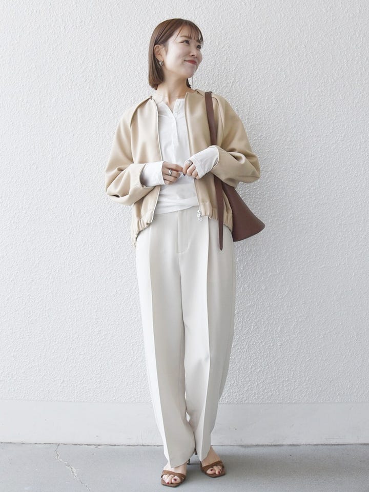 着用アイテム:ジャージー ギャザー コンパクト ブルゾン ベージュ
