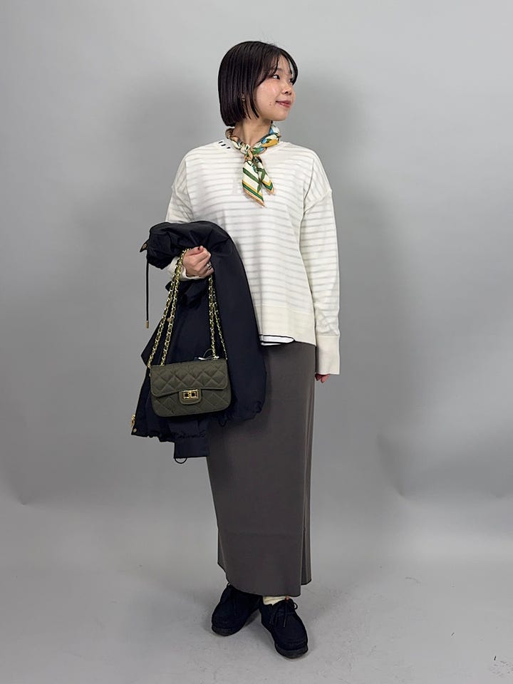 伸縮性がありなめらかな素材感。楽な着心地です。程よい薄さで嵩張らないので、重ね着にも使っていただけます◎