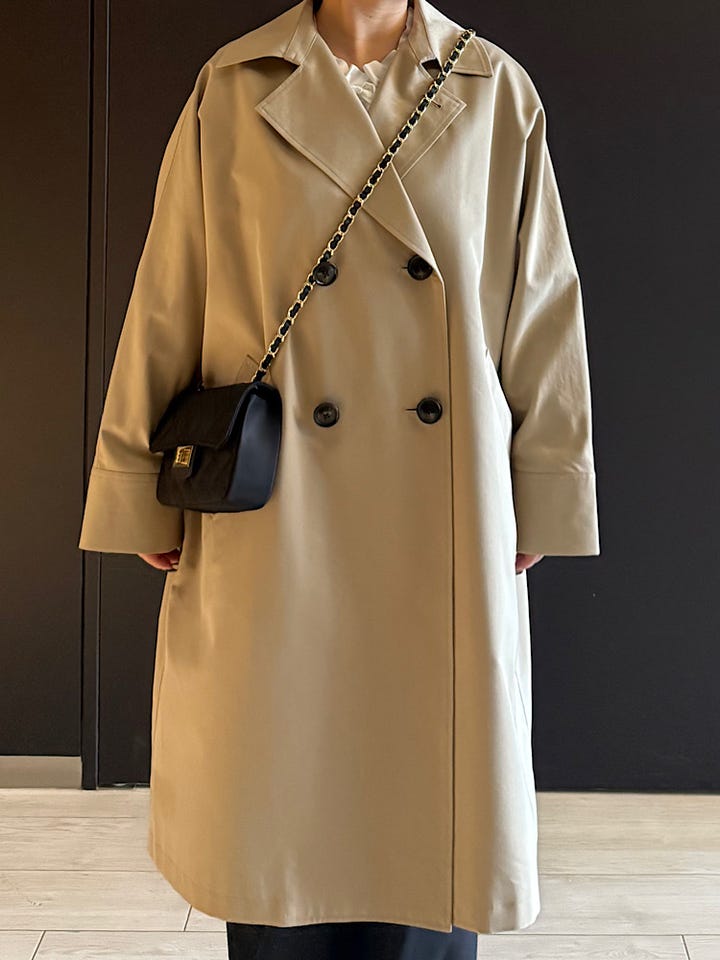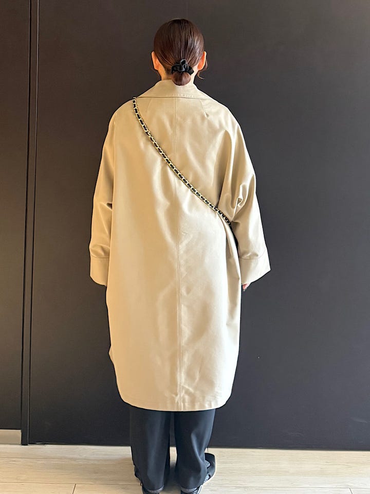 【着心地】そこまで重たくなく、全体的にゆったりしています。そこまで広がりもなく合わせやすいコートです。