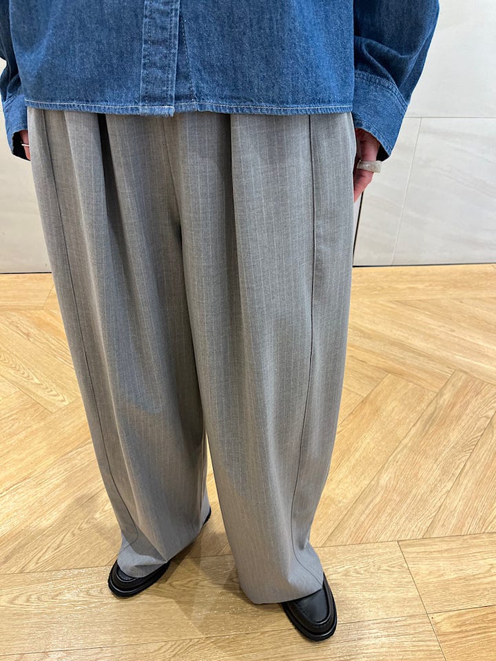 〔36〕《一部追加予約》〈手洗い可能〉トロ ピン ストライプ ウエスト ギャザー パンツ