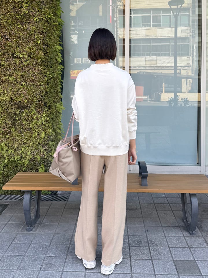 サイズ感・着心地:ゆとりあり。ハーフジップを下ろして肌見せしても良し、中に重ねてあたたかく着ても良し!な優秀アイテム。スラックス合わせで綺麗めにも、思いっきりカジュアルにも合わせられます!
