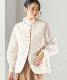 〔ONE SIZE〕ミニ フラワー ジャカード パール モチーフ ボタン ジレ(セレモニー対応可)