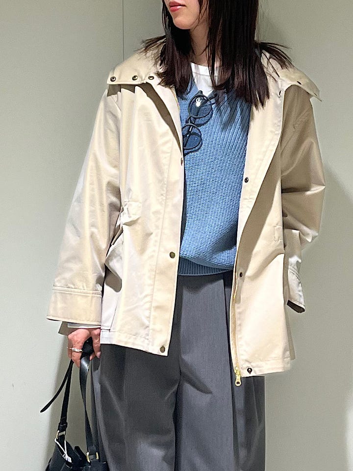 去年も人気だったトレンチコートが今年も入荷しています!見頃ゆったりしているのでニットやスウェットも羽織りやすいサイズ感になっています。ショート丈なのでいろんなボトムとのスタイリングに合わせやすいです。