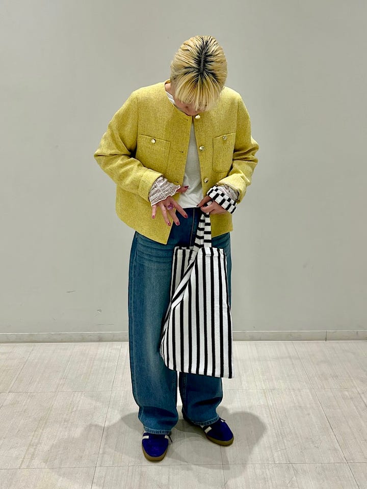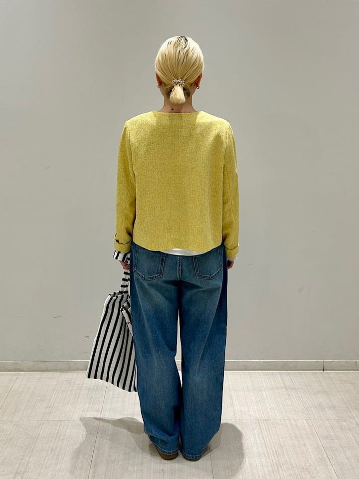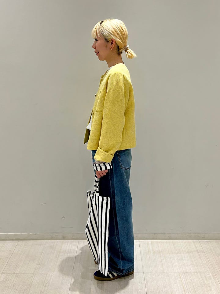 着丈が短めなので身長が高くない私でもバランスがとりやすいです。厚手すぎない生地感なので、楽に着用いただけると思います。