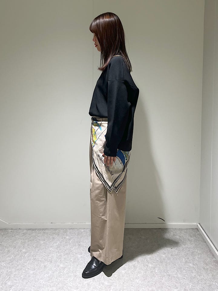 軽い着心地で端境期に万能なトップスです。シワになりにくいのでご自宅でのお手入れも楽なアイテムです。サイドはボタンで開けられるようになっていて合わせるボトムによってインアウトしやすいです!ヒップ周り程よくカバーする丈感でバックスタイルのシルエットもカバーしてくれます!