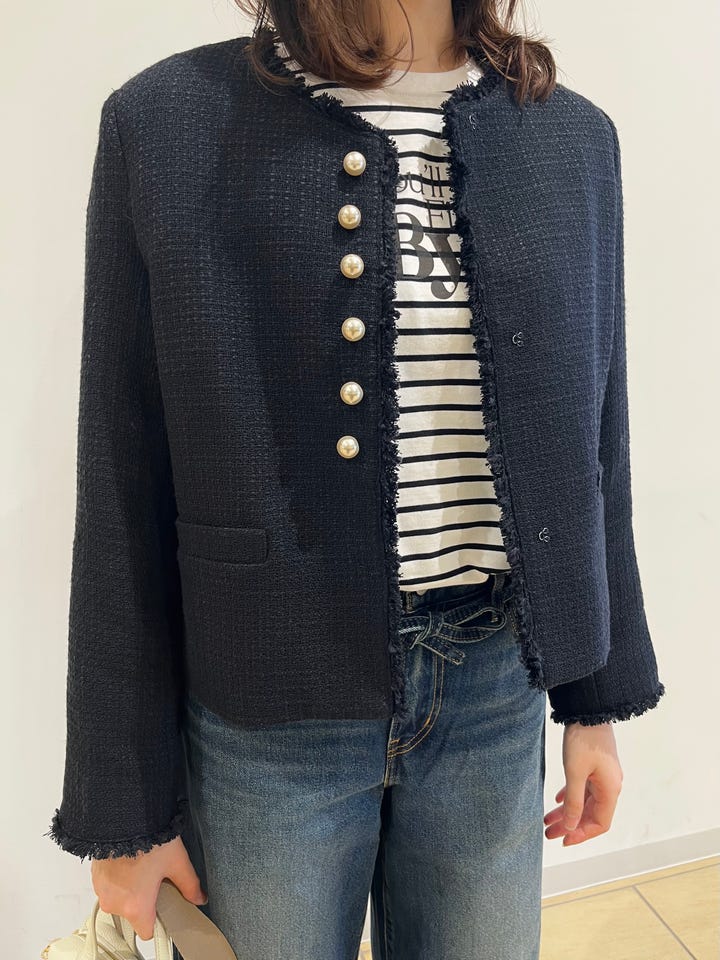 〔38〕《一部追加予約》トライスピン 杢 ツイード パール モチーフ ボタン ジャケット(セレモニー対応可)