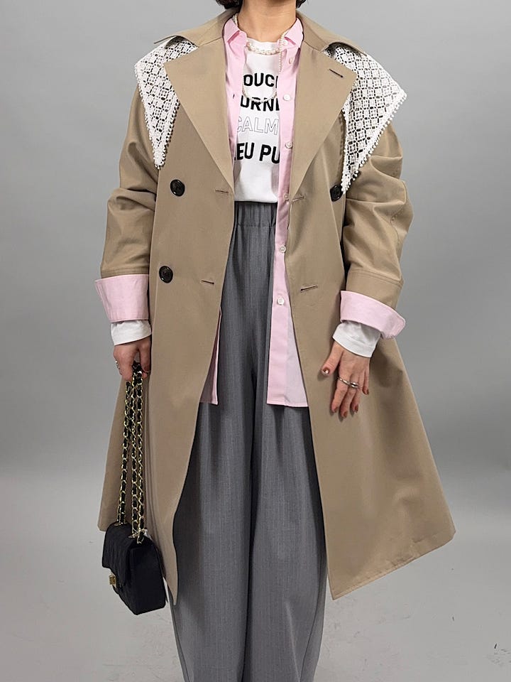 薄手でしなやかな素材感。軽い着心地です。ゆったりしたシルエットですが嵩張りません◎襟が小さめなので、重ね着をしても首元すっきりと着られました。