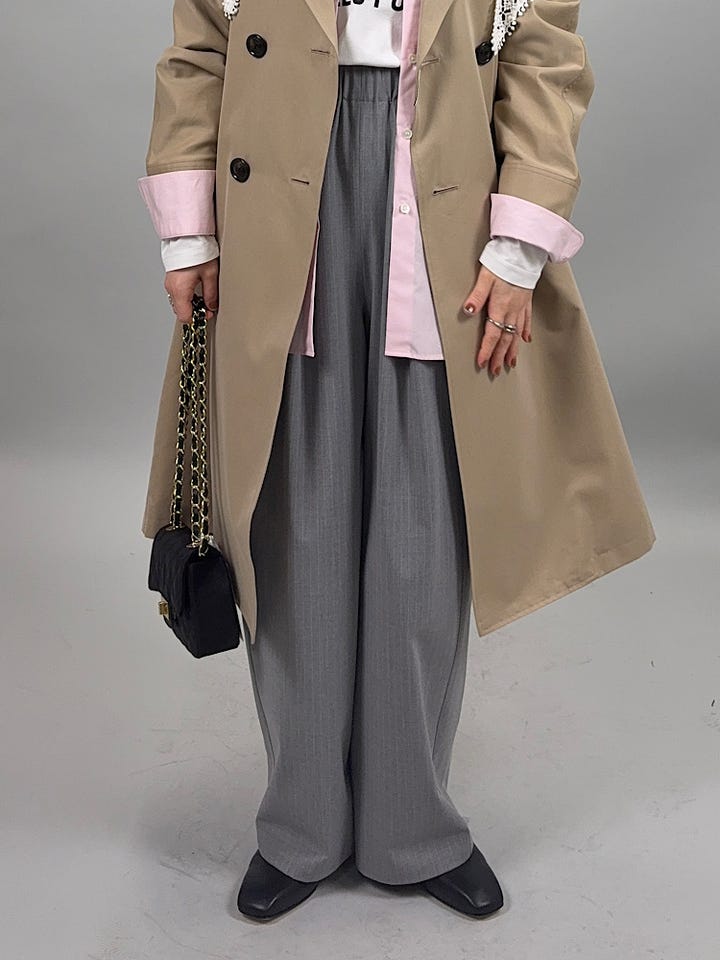 〔36〕《一部追加予約》〈手洗い可能〉トロ ピン ストライプ ウエスト ギャザー パンツ