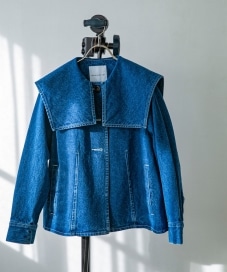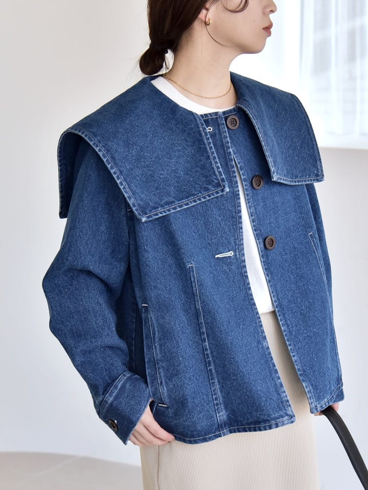 〔ONE SIZE〕quaranciel:〈洗濯機可能〉セーラーカラー デニム ブルゾン
