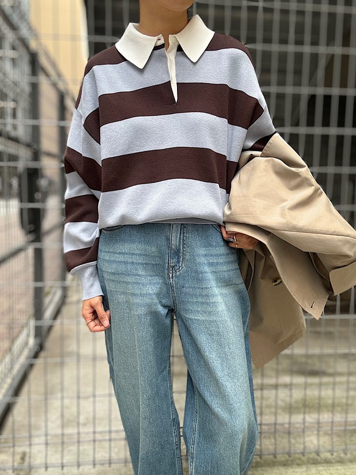 【素材感・着心地】トレンドカラーが可愛い、ワイドボーダーニット。