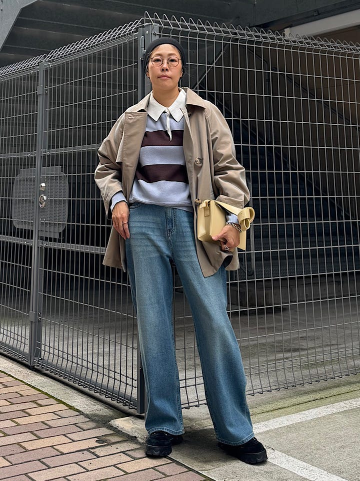 【素材感・着心地】リラックスサイズのハーフトレンチコート。