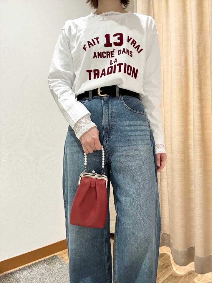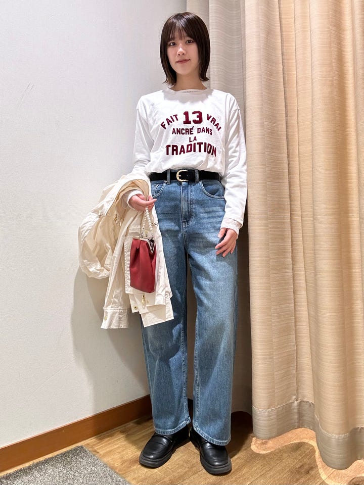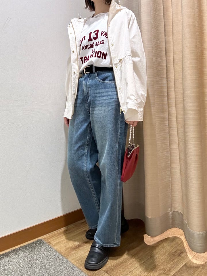 着心地:柔らかいデニムで履いていただきやすいです。股上が深めなワイドなシルエットで形綺麗に履いていただけます◎