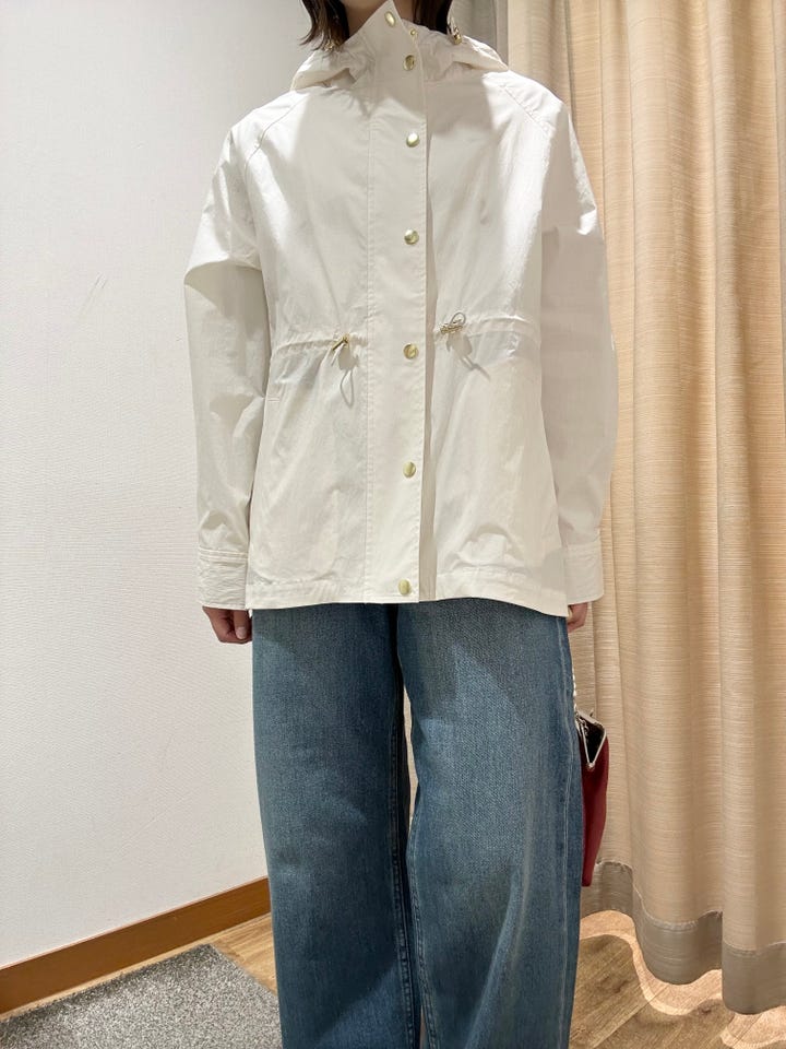 着心地:軽量で楽に着ていただけます。ホワイトにゴールドボタンが春らしくてかわいいです!
