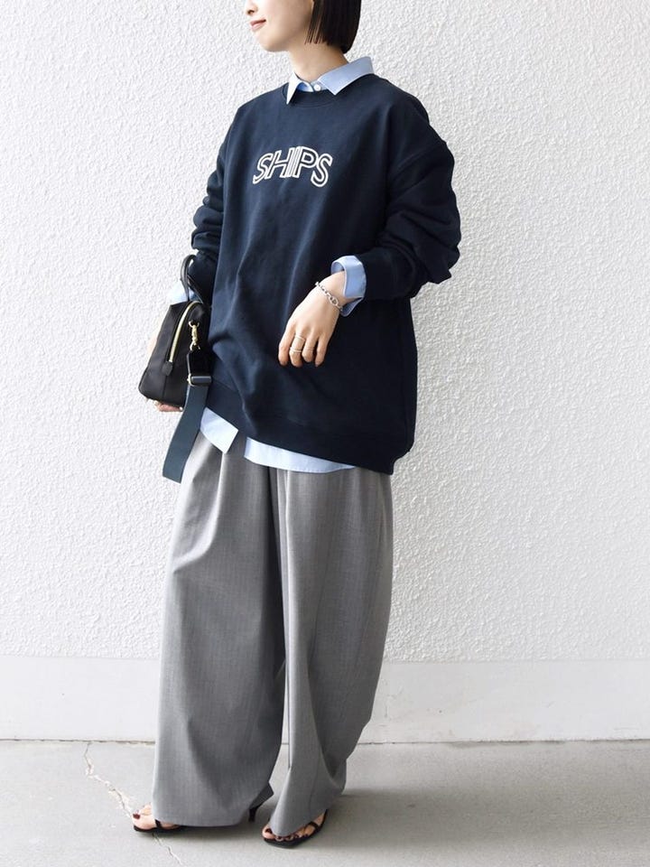 着心地:落ち感のある素材なので、ワイドな形でも着膨れ感はありません。