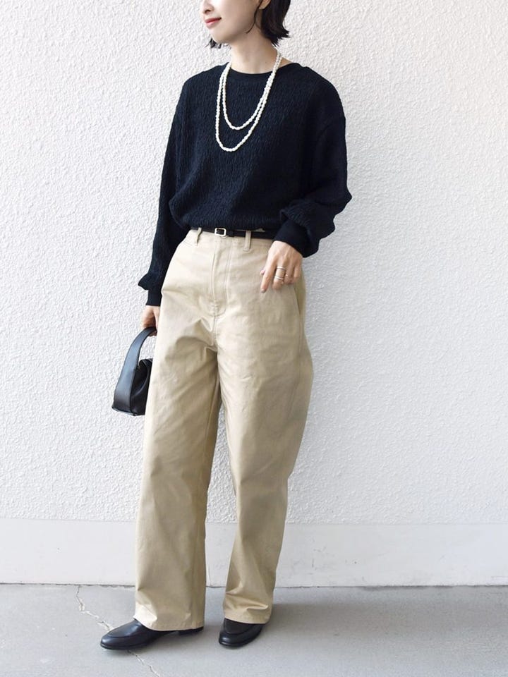 着心地:ストレッチが効いていて楽な穿き心地。合わせるだけで大人カジュアルスタイルが完成するアイテムです。