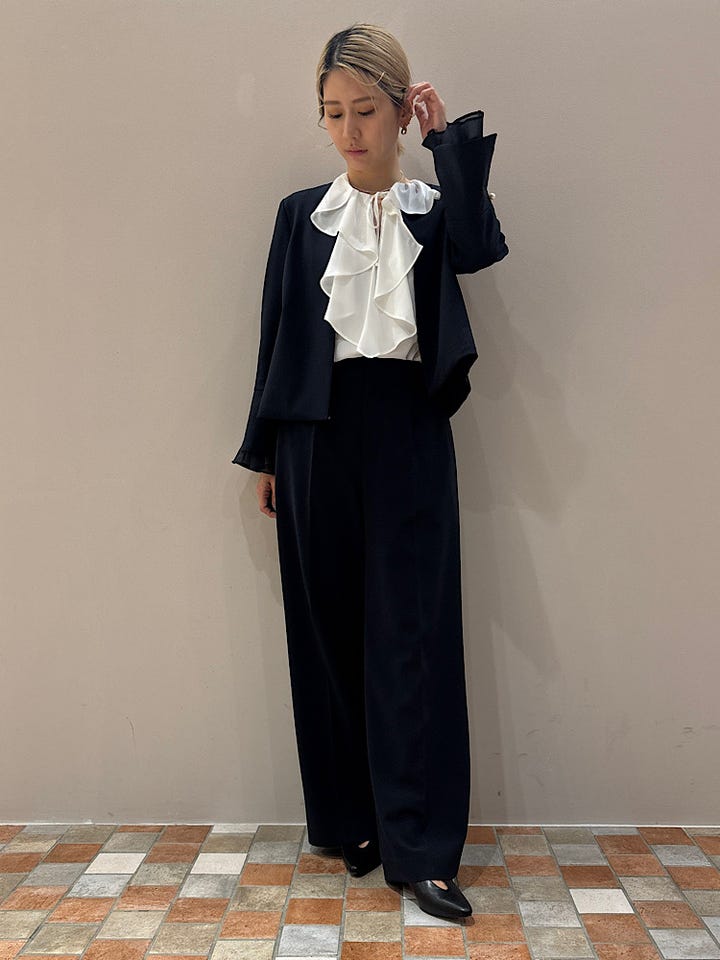 【素材感・着心地】少し伸縮性のある素材。セレモニーにお勧め。
