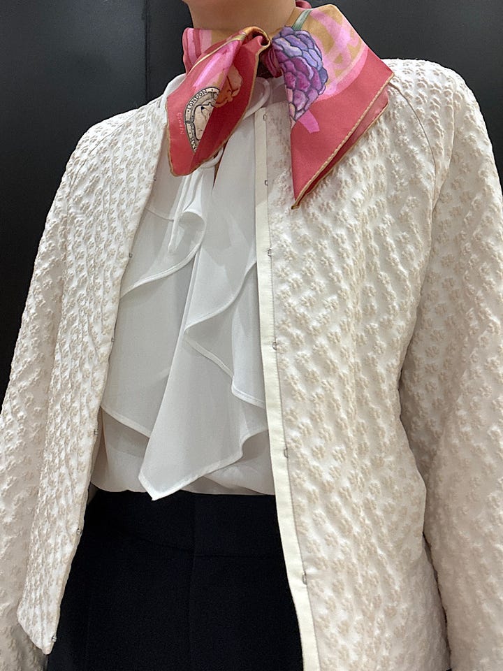 【素材感・着心地】少し伸縮性のある素材。セレモニーにお勧め。