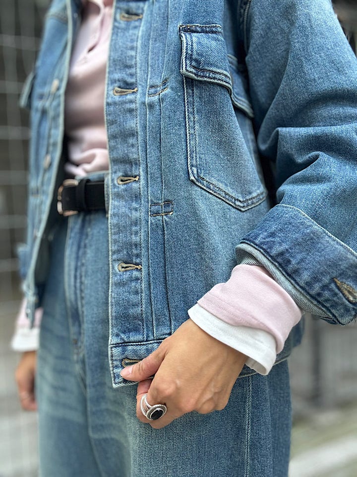 【素材感・着心地】ゆったりとしたサイズ感のデニムジャケット。